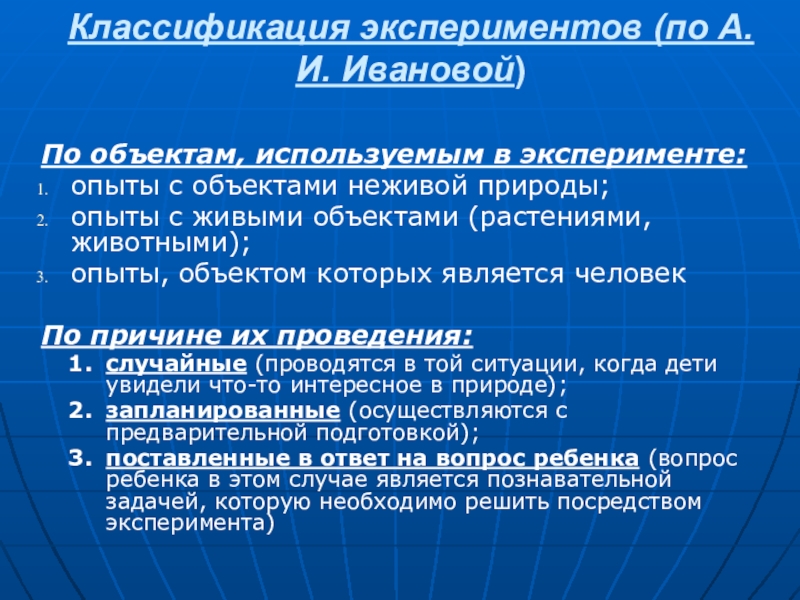 Слайд 7Классификация экспериментов (по А.И. Ивановой)
