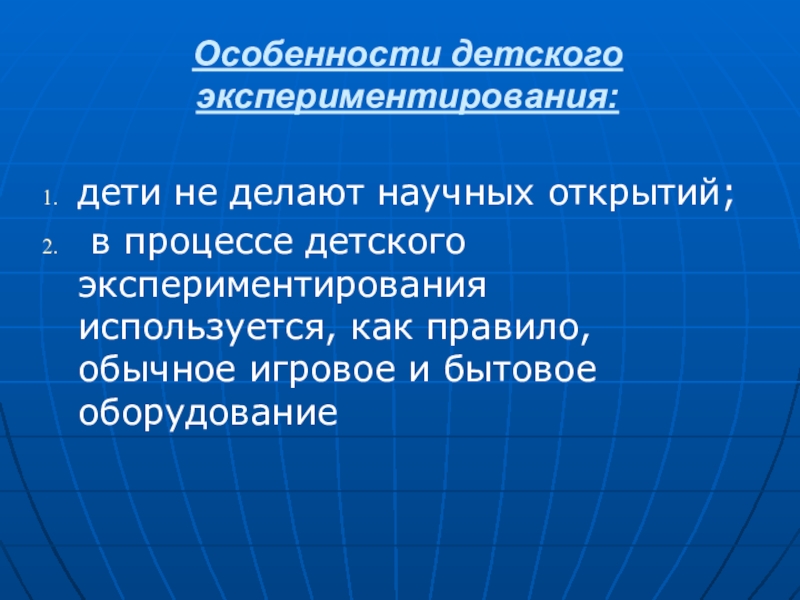 Слайд 4Особенности детского экспериментирования:
