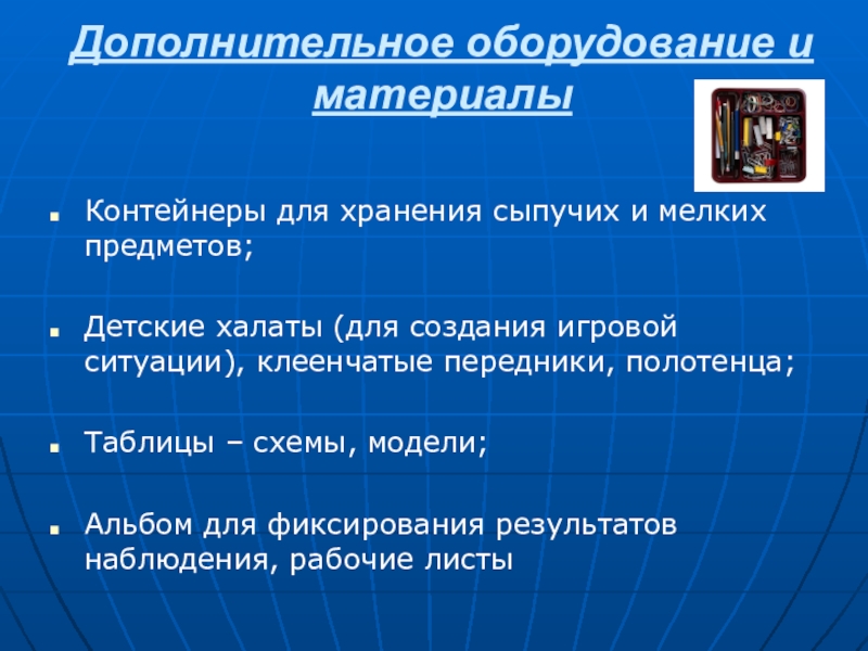 Слайд 15Дополнительное оборудование и материалы
