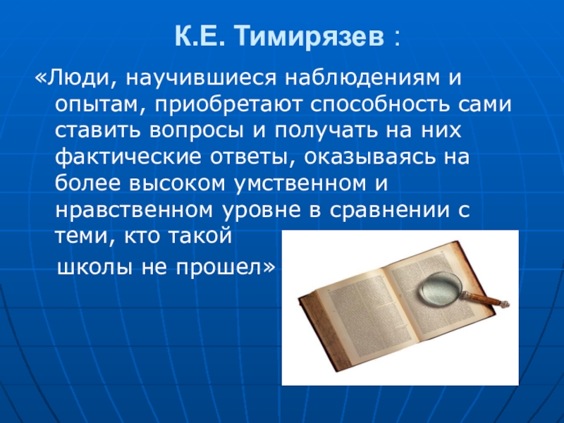 Слайд 6К.Е. Тимирязев :