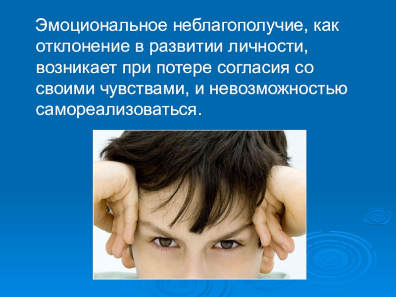 Слайд 15 Эмоциональное неблагополучие, как отклонение в развитии личности, возникает при