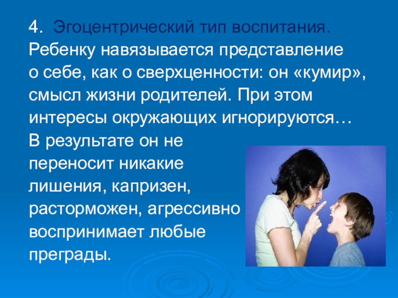 Слайд 26Существуют 4 типа наиболее распространенного деструктивного семейного воспитания, приводящие