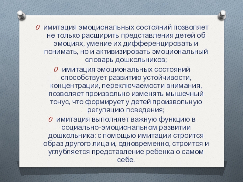 Слайд 24имитация эмоциональных состояний позволяет не только расширить представления детей об эмоциях,