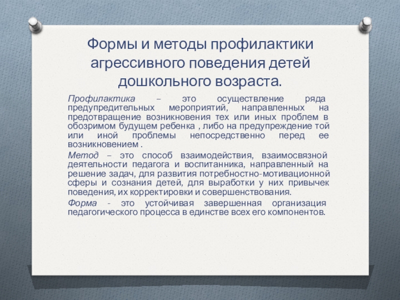 Слайд 29Формы и методы профилактики агрессивного поведения детей дошкольного возраста.