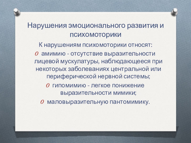Слайд 20Нарушения эмоционального развития и психомоторики