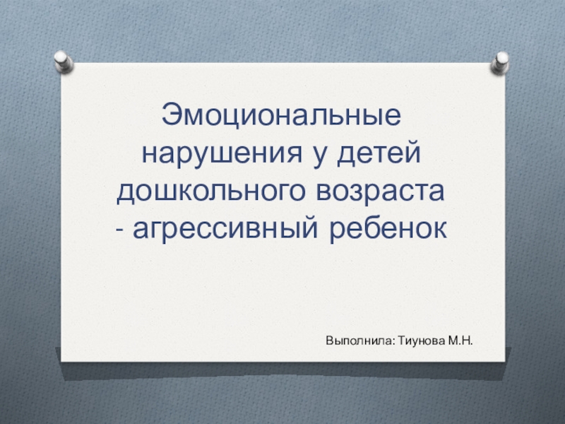 Слайд 1Эмоциональные нарушения у детей дошкольного возраста - агрессивный ребенок