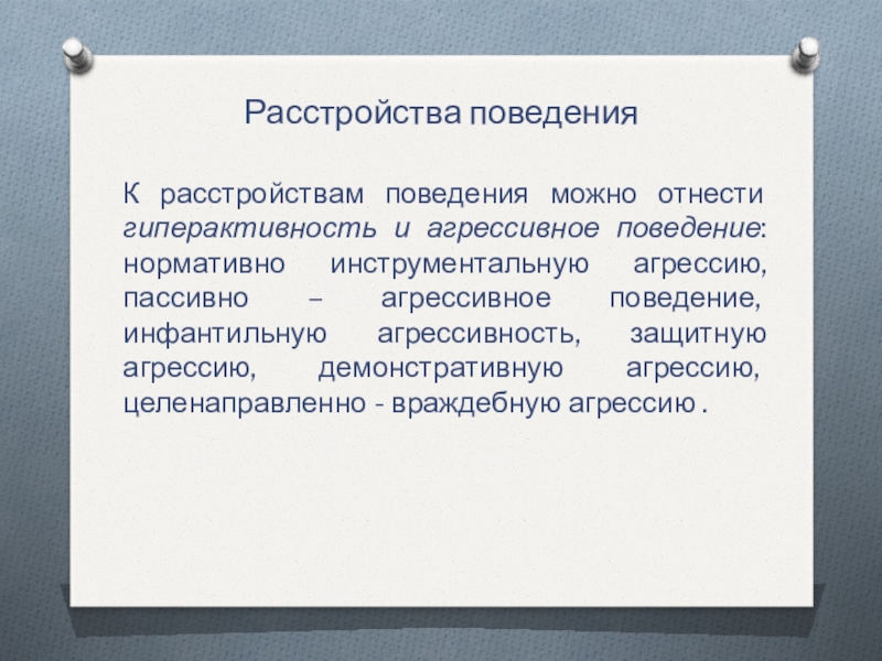 К расстройствам поведения можно отнести гиперактивность и агрессивное поведение:
