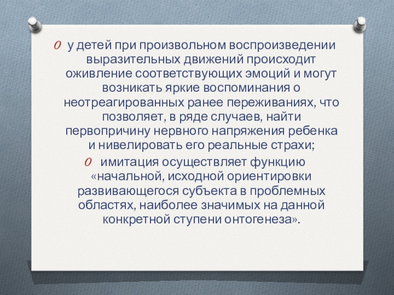 Слайд 23у детей при произвольном воспроизведении выразительных движений происходит оживление соответствующих эмоций