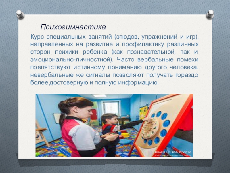 на развитие и профилактику различных сторон психики ребенка (как познавательной, так и эмоционально-личностной). Часто вербальные помехи препятствуют истинному пониманию другого человека. невербальные же сигналы позволяют получать гораздо более достоверную и полную информацию.