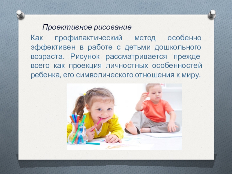 работе с детьми дошкольного возраста. Рисунок рассматривается прежде всего как проекция личностных особенностей ребенка, его символического отношения к миру.