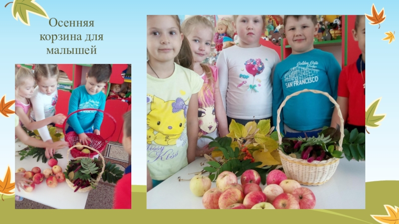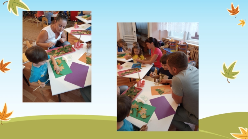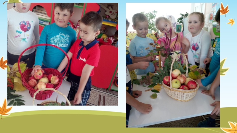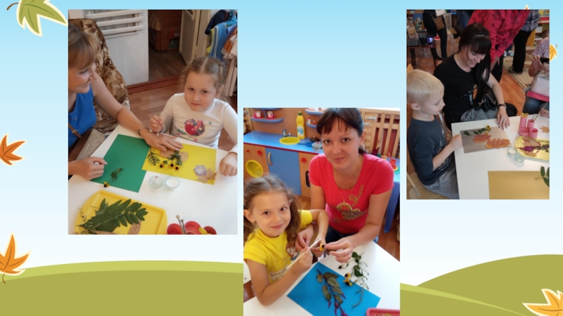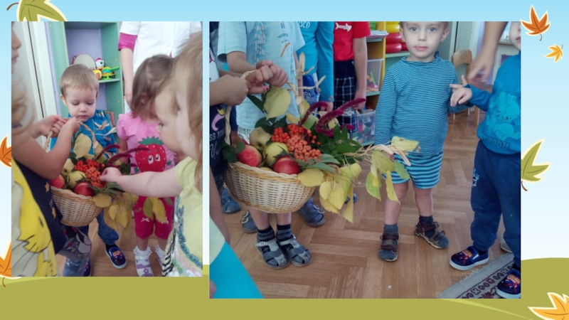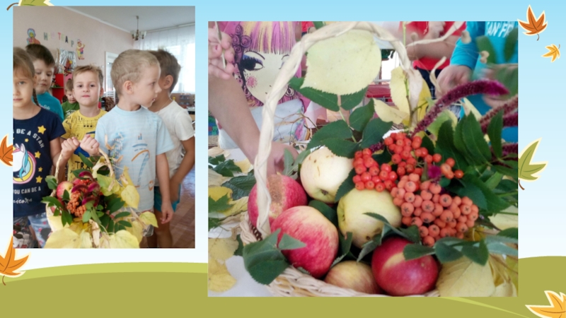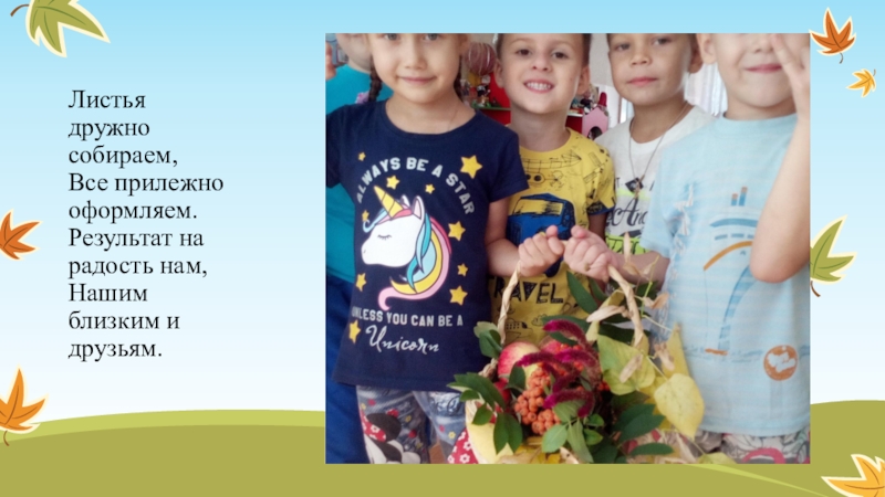 Листья дружно собираем, Все прилежно оформляем. Результат на радость нам, Нашим близким и друзьям.