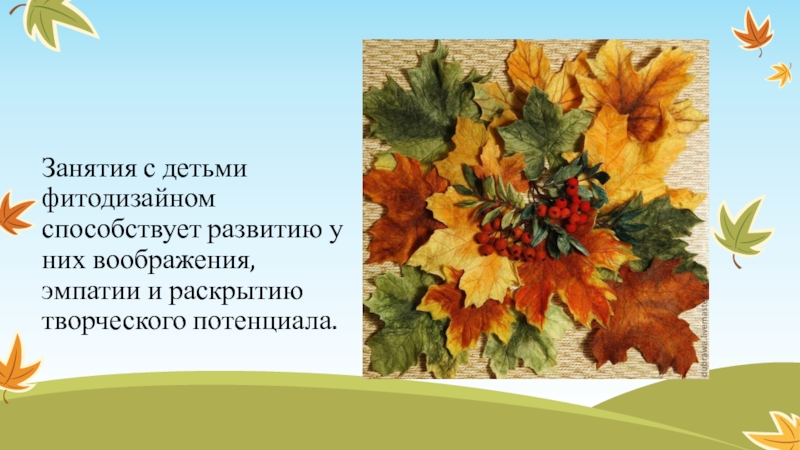Слайд 6Занятия с детьми фитодизайном способствует развитию у них воображения, эмпатии и