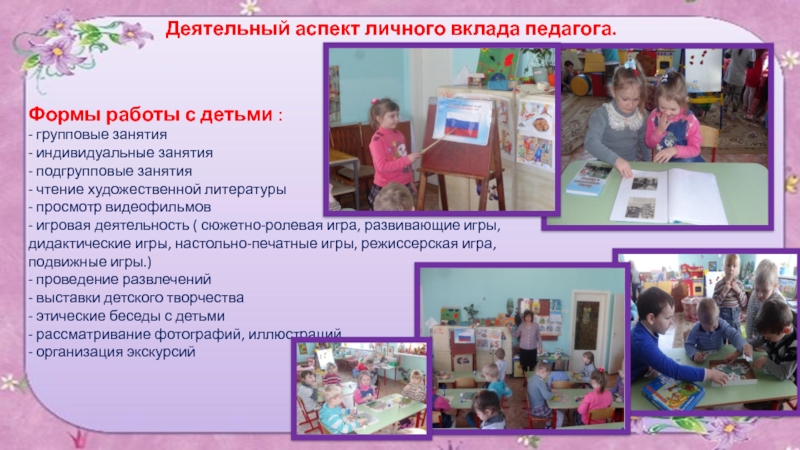 Деятельный аспект личного вклада педагога.