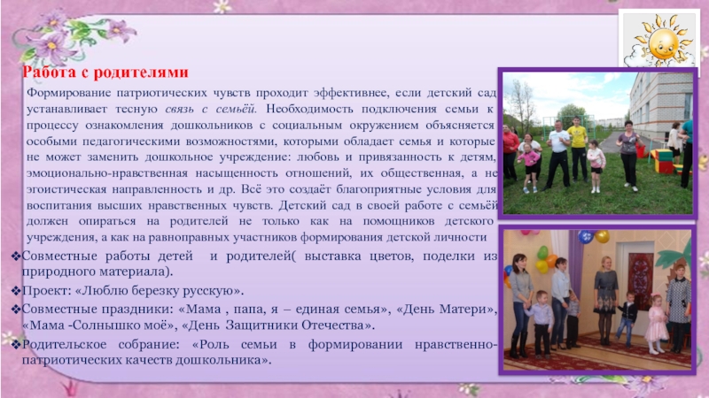 Привлечение родителей к воспитательно– образовательному процессу через различные формы