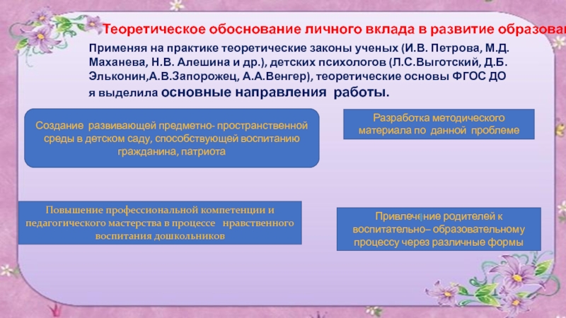Теоретическое обоснование личного вклада в развитие образования.