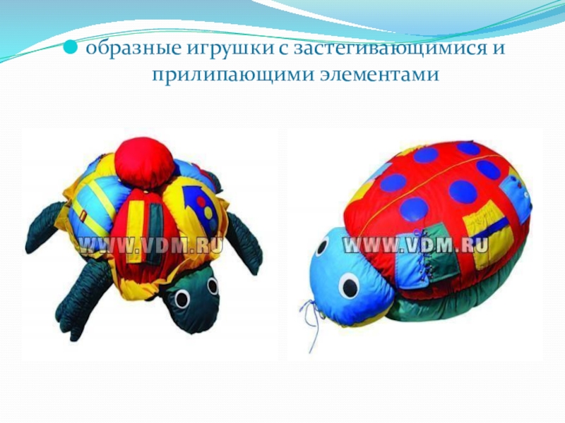 Слайд 10образные игрушки с застегивающимися и прилипающими элементами