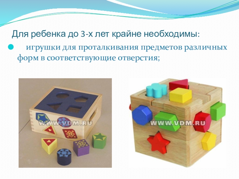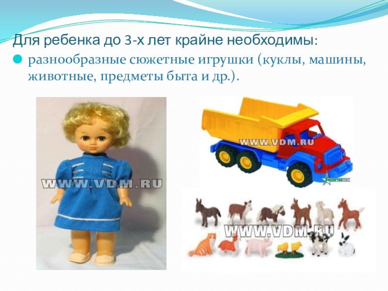 Слайд 7Для ребенка до 3-х лет крайне необходимы: