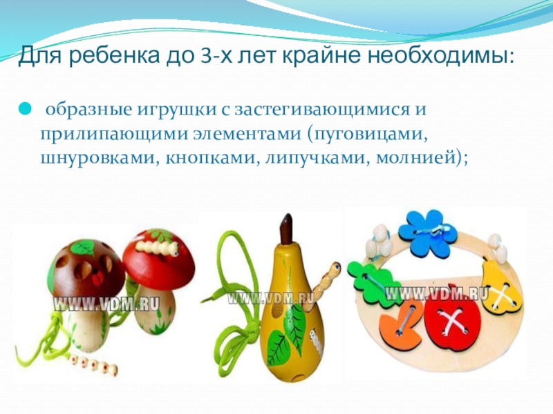 Слайд 4 Дидактические игрушки развивают мелкую моторику, вызывают