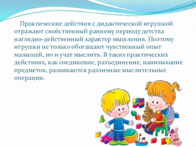 Слайд 3 Практические действия с дидактической игрушкой отражают свойственный