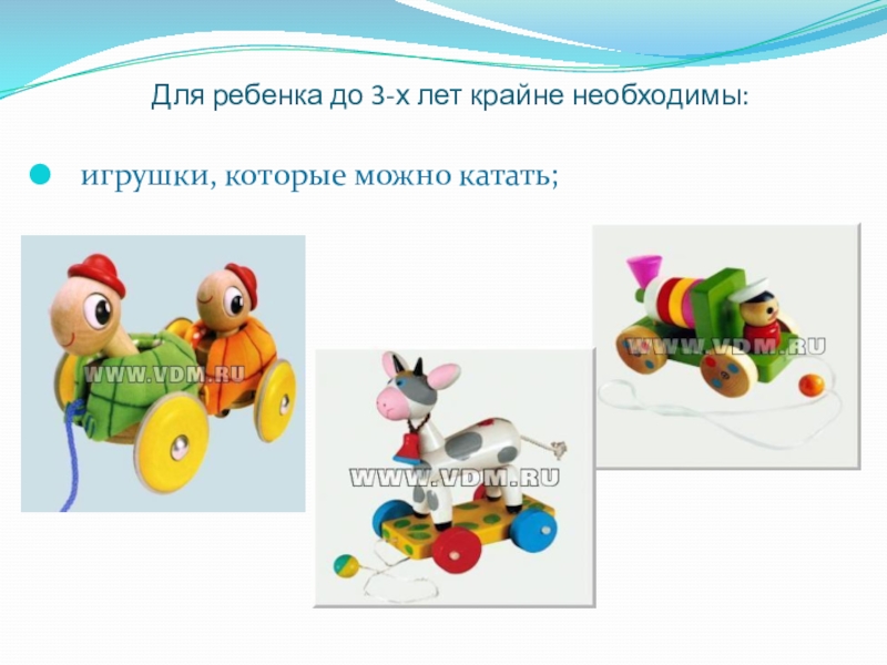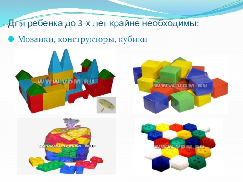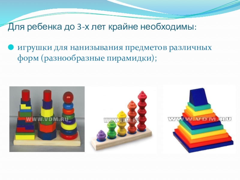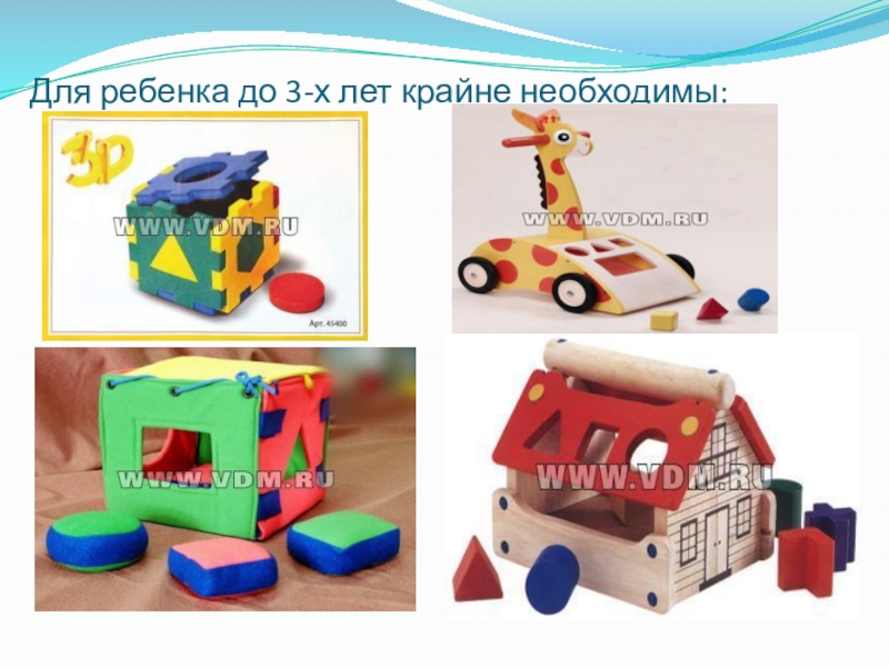 Слайд 8Для ребенка до 3-х лет крайне необходимы: