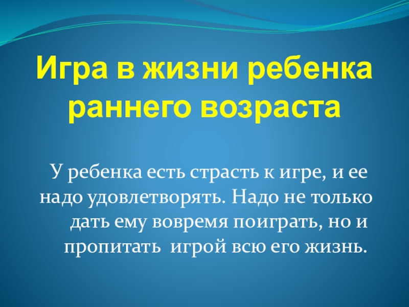 и ее надо удовлетворять. Надо не только дать ему вовремя поиграть, но и пропитать игрой всю его жизнь.