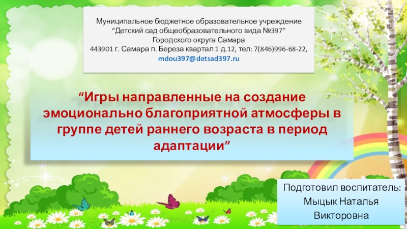 “Игры направленные на создание эмоционально благоприятной атмосферы в группе детей раннего возраста в период адаптации”