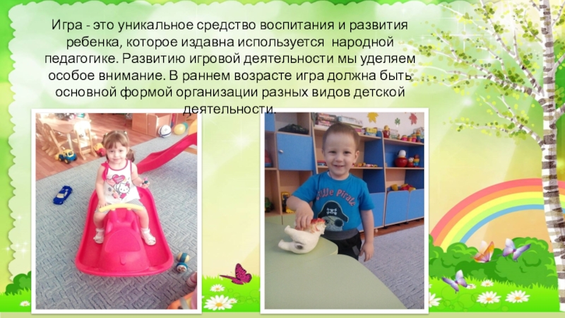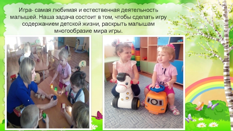 Слайд 13Игра- самая любимая и естественная деятельность малышей. Наша задача состоит в