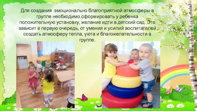 Слайд 5Для создания эмоционально благоприятной атмосферы в группе необходимо сформировать у ребенка
