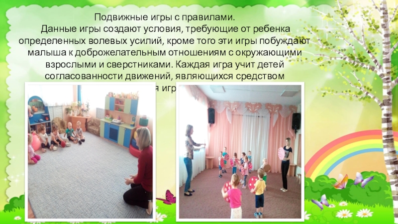 определенных волевых усилий, кроме того эти игры побуждают малыша к доброжелательным отношениям с окружающими взрослыми и сверстниками. Каждая игра учит детей согласованности движений, являющихся средством достижения игровой цели.