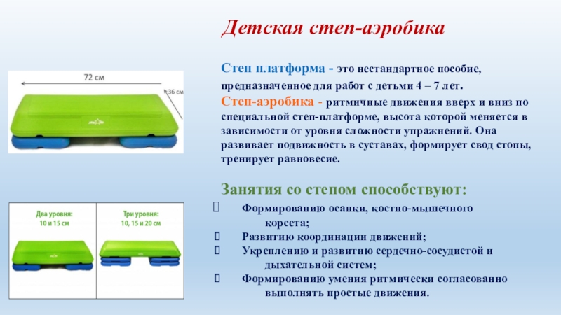 Степ платформа - это нестандартное пособие, предназначенное для работ с детьми 4 – 7 лет.
