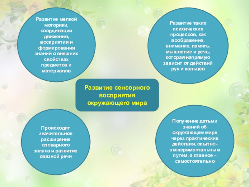 Развитие таких психических процессов, как воображение, внимание, память, мышление и речь, которая напрямую зависит от действий рук и пальцев