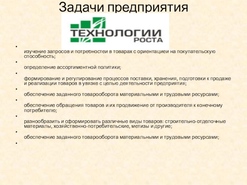 Слайд 8Задачи предприятия