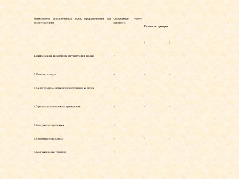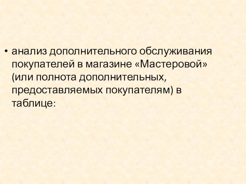 Слайд 10анализ дополнительного обслуживания покупателей в магазине «Мастеровой» (или полнота дополнительных, предоставляемых