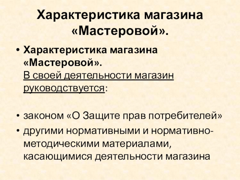 Слайд 5Характеристика магазина «Мастеровой».