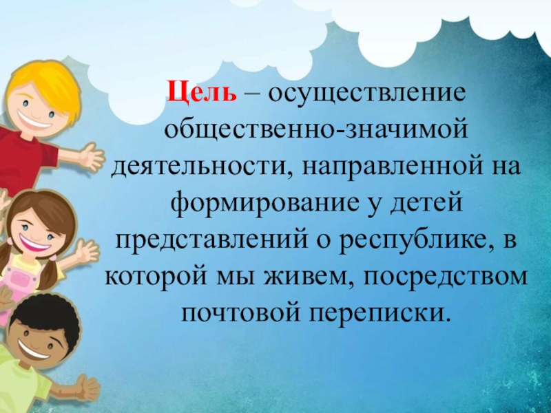 Цель – осуществление общественно-значимой деятельности, направленной на формирование у детей представлений о республике, в которой мы живем,