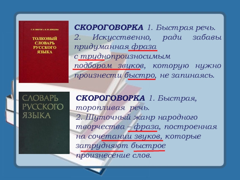 СКОРОГОВОРКА 1. Быстрая, торопливая речь.