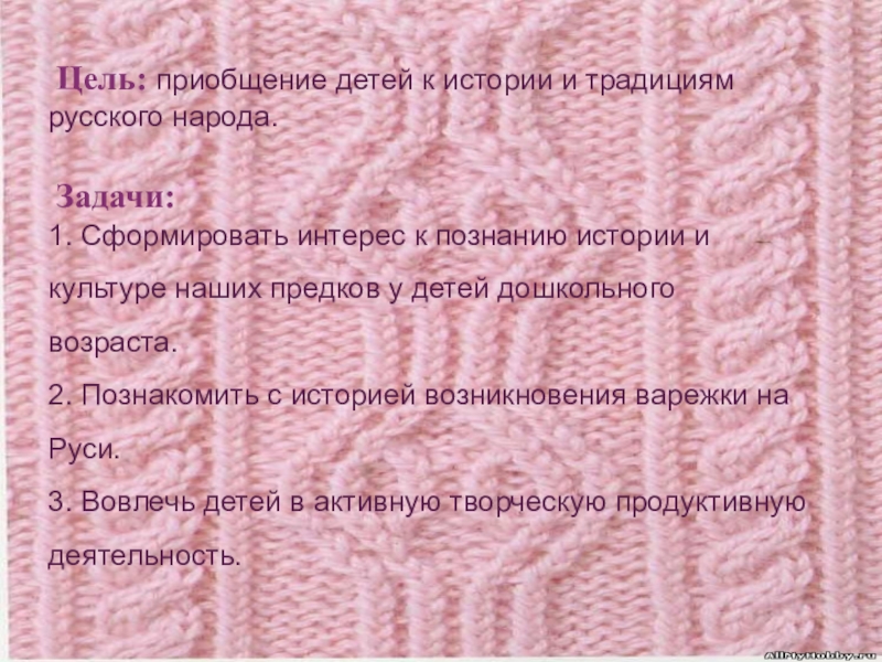 Слайд 3 Цель: приобщение детей к истории и традициям русского народа.