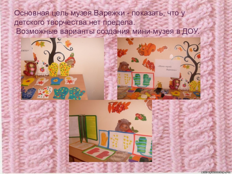 Слайд 32Основная цель музея Варежки - показать, что у детского творчества нет