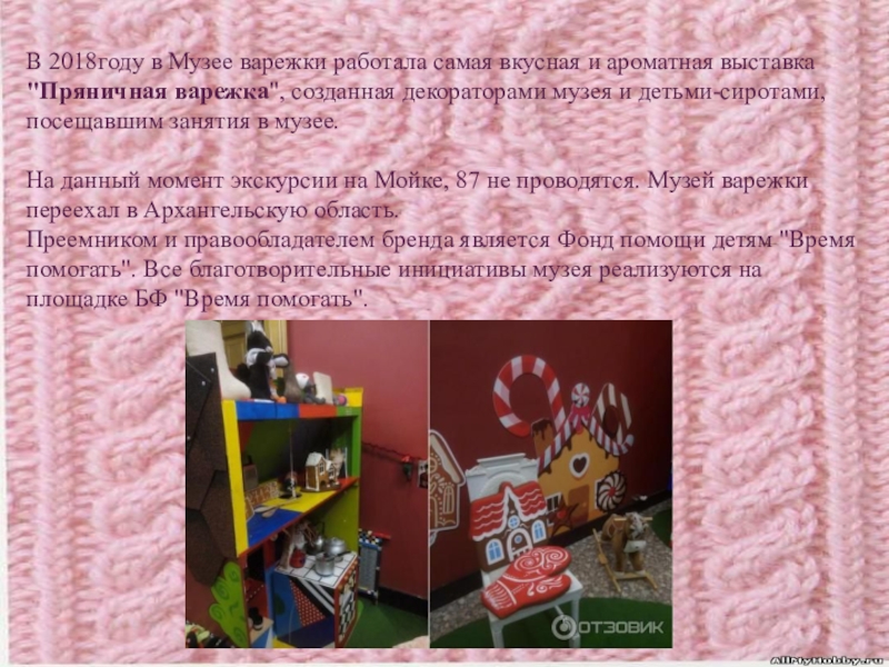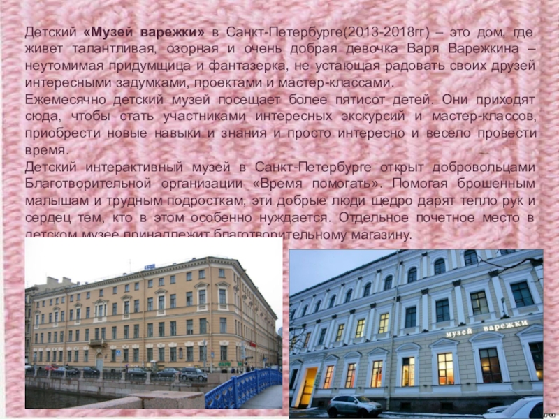 Слайд 20Детский «Музей варежки» в Санкт-Петербурге(2013-2018гг) – это дом, где живет талантливая,