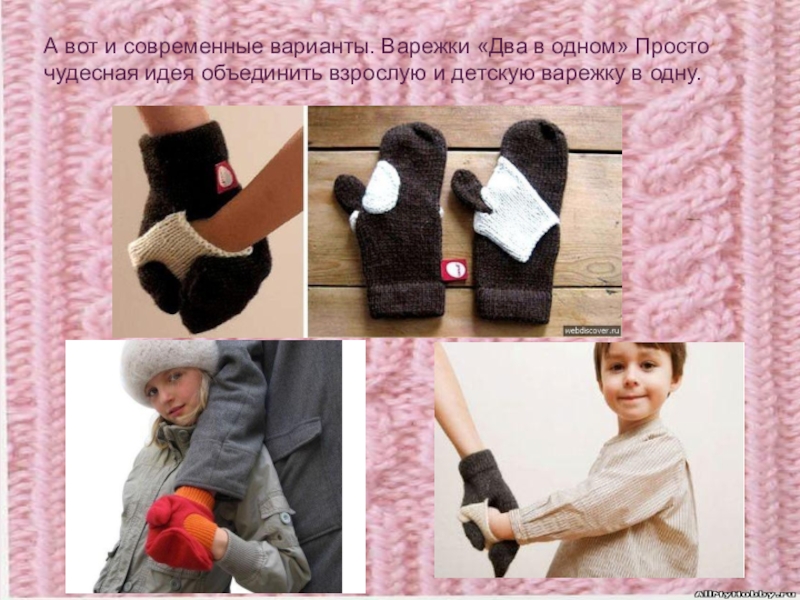 Слайд 16А вот и современные варианты. Варежки «Два в одном» Просто чудесная