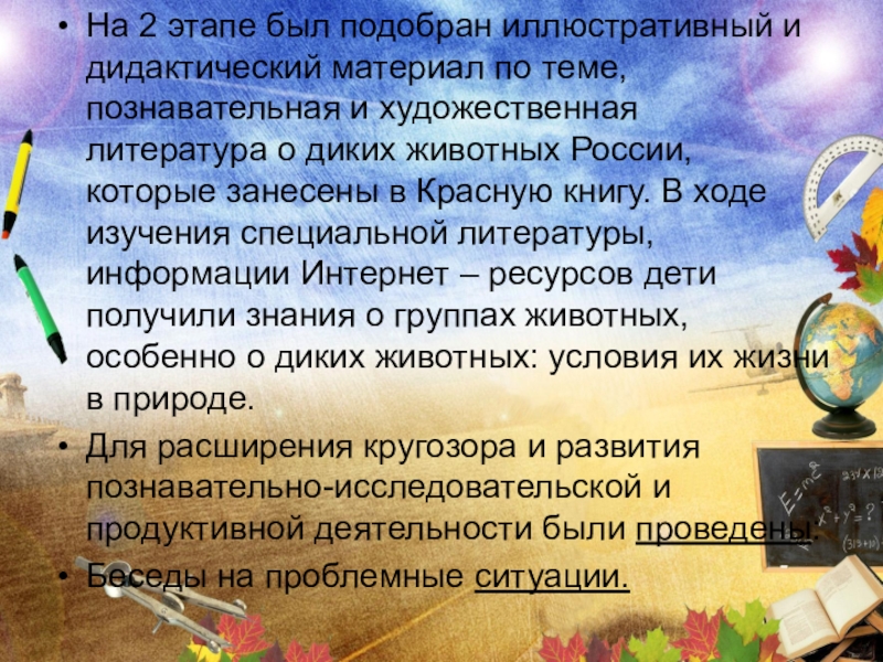 Слайд 12На 2 этапе был подобран иллюстративный и дидактический материал по теме,