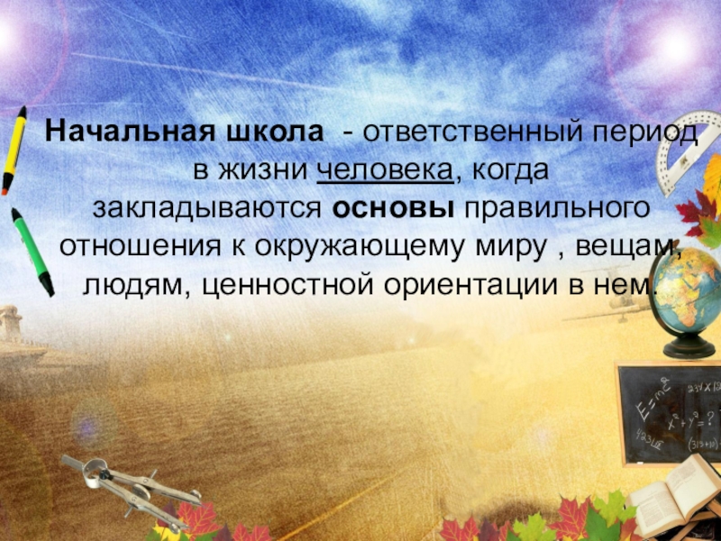 Начальная школа - ответственный период в жизни человека, когда закладываются основы правильного отношения