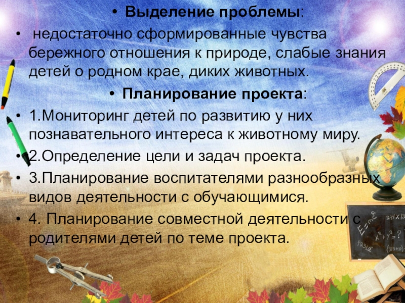 недостаточно сформированные чувства бережного отношения к природе, слабые знания