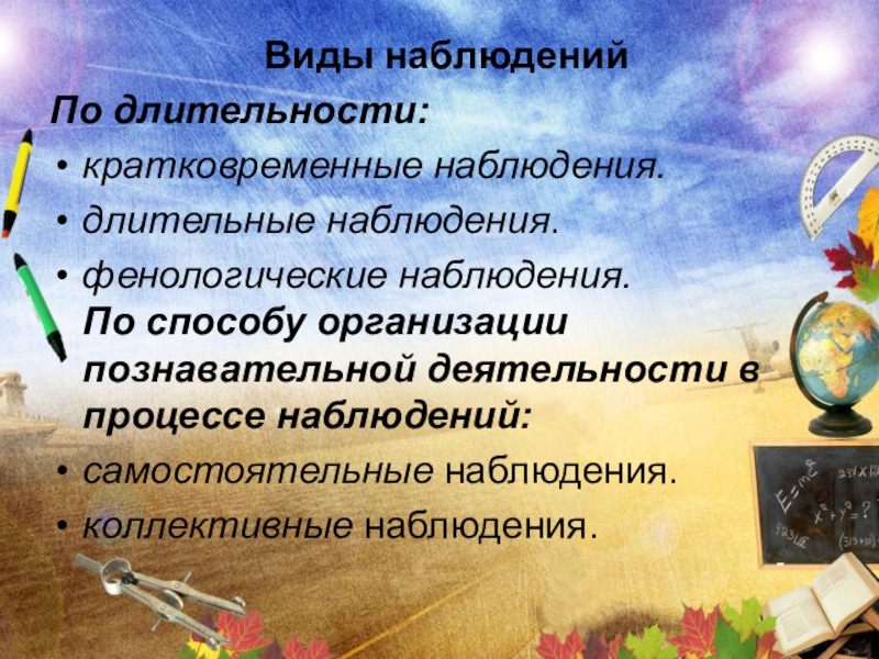 Слайд 3Наблюдение - это специально организованное педагогом, целенаправленное, более или менее длительное и