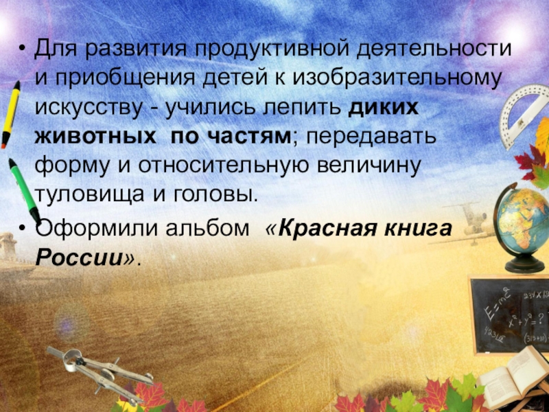 Слайд 14Для развития продуктивной деятельности и приобщения детей к изобразительному искусству -
