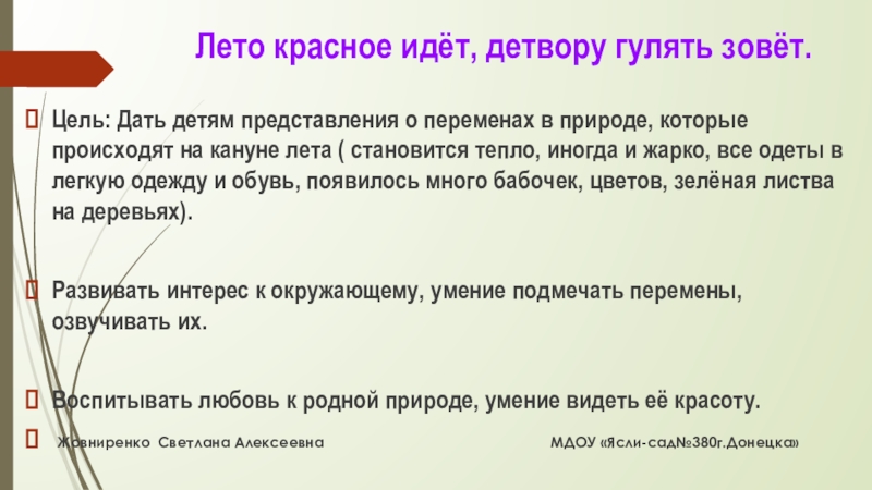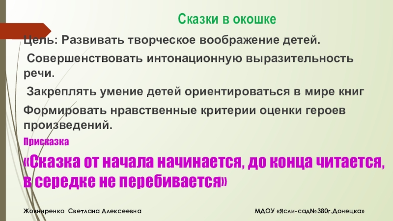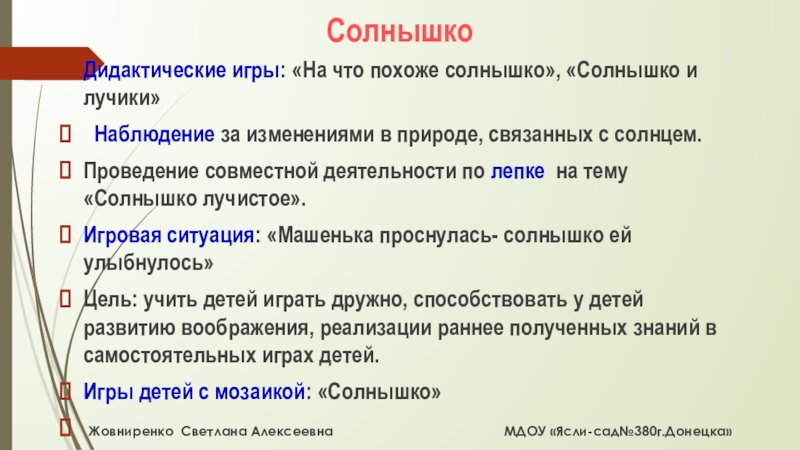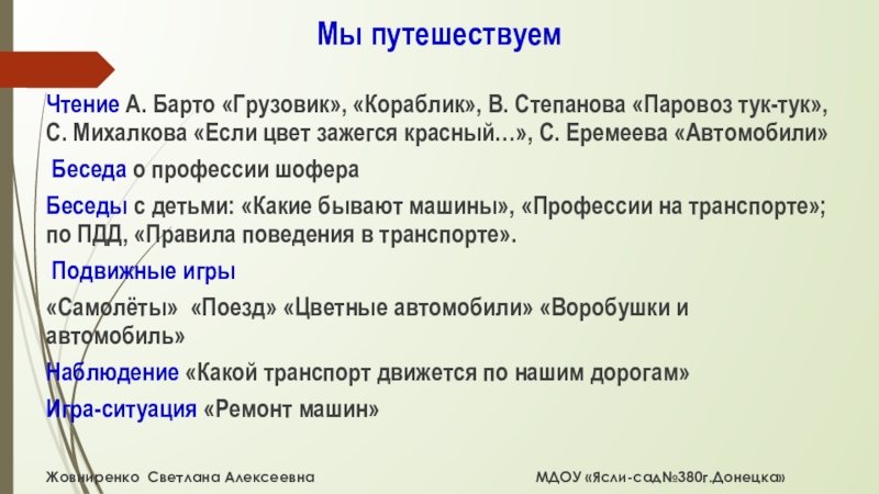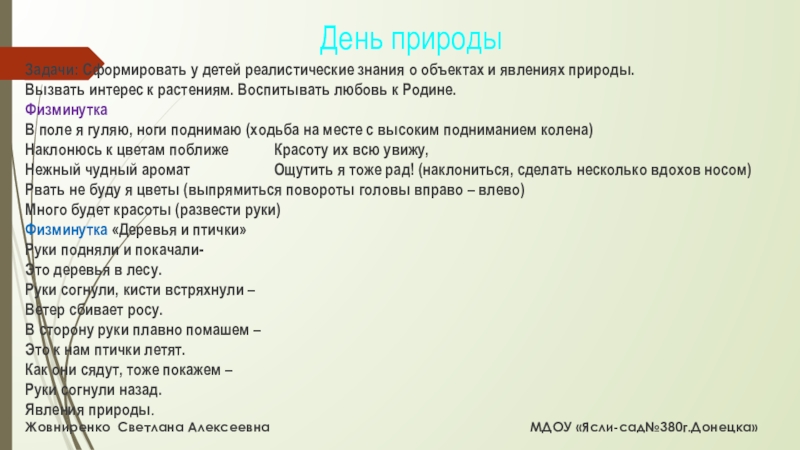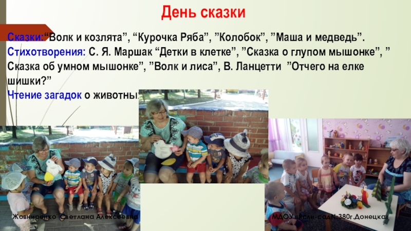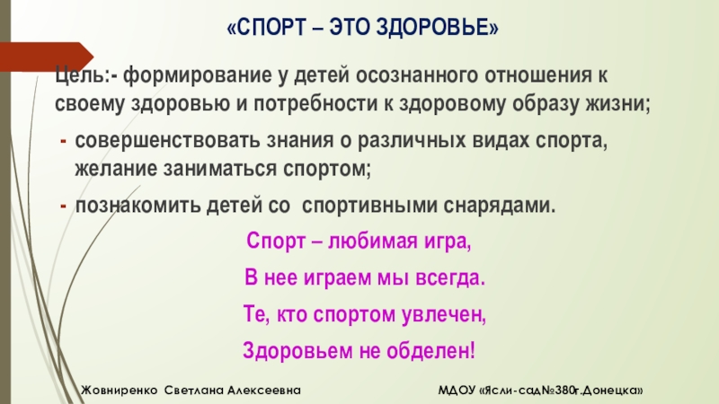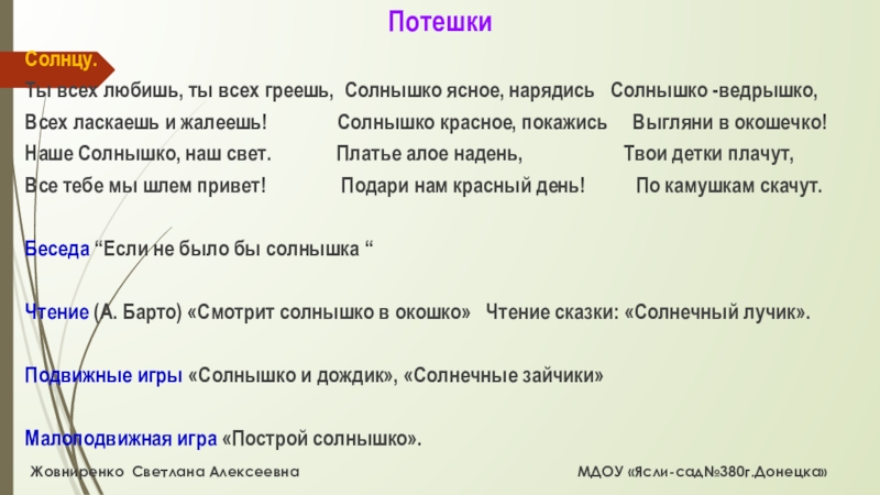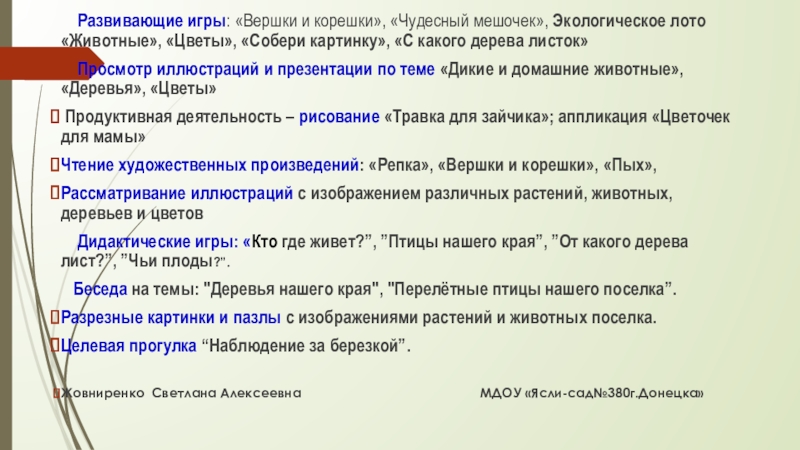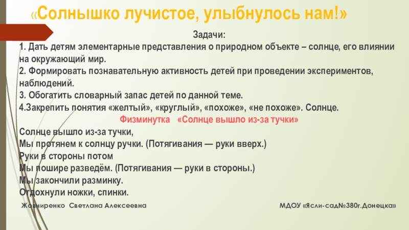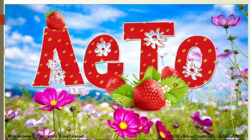 Жовниренко Светлана Алексеевна МДОУ «Ясли-сад№380г.Донецка»