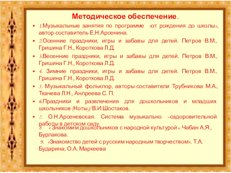 9. «Знакомство детей с русским народным творчеством». Т.А.Бударина, О.А. Маркеева