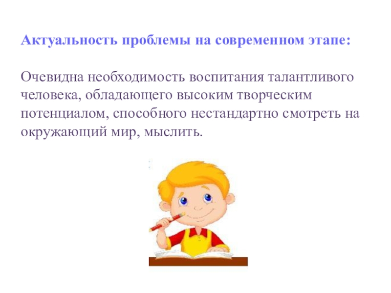 Очевидна необходимость воспитания талантливого человека, обладающего высоким