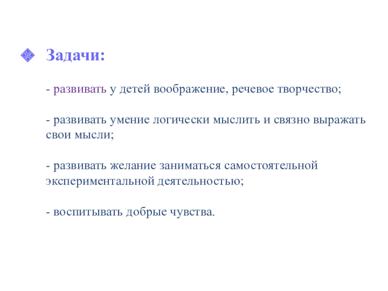 - развивать у детей воображение, речевое творчество;