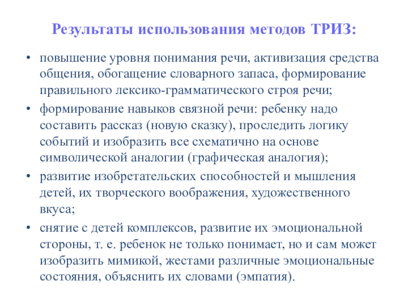 Слайд 10Результаты использования методов ТРИЗ:
